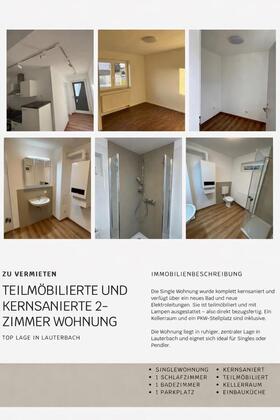 Zur Vermietung steht eine kernsanierte 2-Zimmer-Wohnung in ruhiger, zentraler Lage von Lauterbach (36341). Die Wohnung eignet sich ideal für Singles oder Pendler und ist ab August 2026 bezugsfrei.